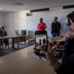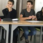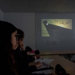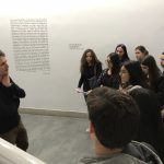L’après-midi fut tout aussi riche puisque les élèves ont eu l’occasion de rencontrer et de discuter avec l’artiste vidéaste Ismail BAHRI autour de son exposition « Ce qui demeure » à la Selma Feriani Gallery (Sidi Bou Said). Après avoir présenté ses œuvres au Musée du Jeu de Paume à Paris en Juin dernier lors de son exposition « Instruments », Ismail Bahri revient en Tunisie pour une exposition où l’image, le son, la lumière, le temps, la durée, le visible et la caméra se conjuguent et interrogent l’acte de création. Innovant, intriguant, l’artiste a donné envie aux élèves de s’exercer à la vidéo et leur a permis d’approcher un univers artistique aussi singulier et captivant que celui d’Ala Eddine SLIM.