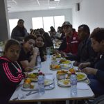 Les sportifs ont d’abord partagé avec eux un repas à  la cantine scolaire.