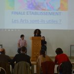 Pendant près de deux heures, les 10 élèves participants, du CM2 à la Seconde, ont débattu sur la question « Les arts sont-ils utiles ? » devant un jury présidé par Mme Mokrani, Proviseure adjointe du collège, et un public nombreux d’élèves venus soutenir leurs camarades.