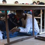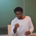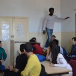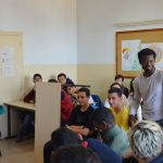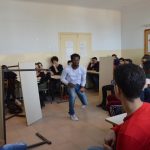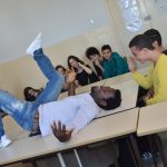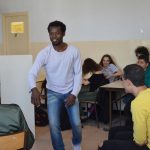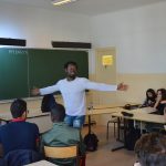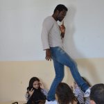 Nous avons assistés à un spectacle qui a eu lieu au sein d’une salle de classe, durant ce spectacle, j’ai découvert qu’à travers la gestuelle on pouvait raconter une histoire, ce spectacle de Florent Mahoukou (danseur et chorégraphe) m’a impressionné car je ne pensée pas qu’en utilisant les objets de notre quotidien (Tables, chaises) on pouvait raconter une histoire nous avons aussi découvert la ville de Brazza et les difficultés par lesquelles ce danseur est passé.