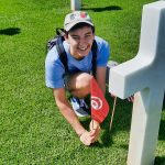 Chaque drapeau est enfoncé dans le sol, à exactement une longueur de botte de la base de la pierre tombale.