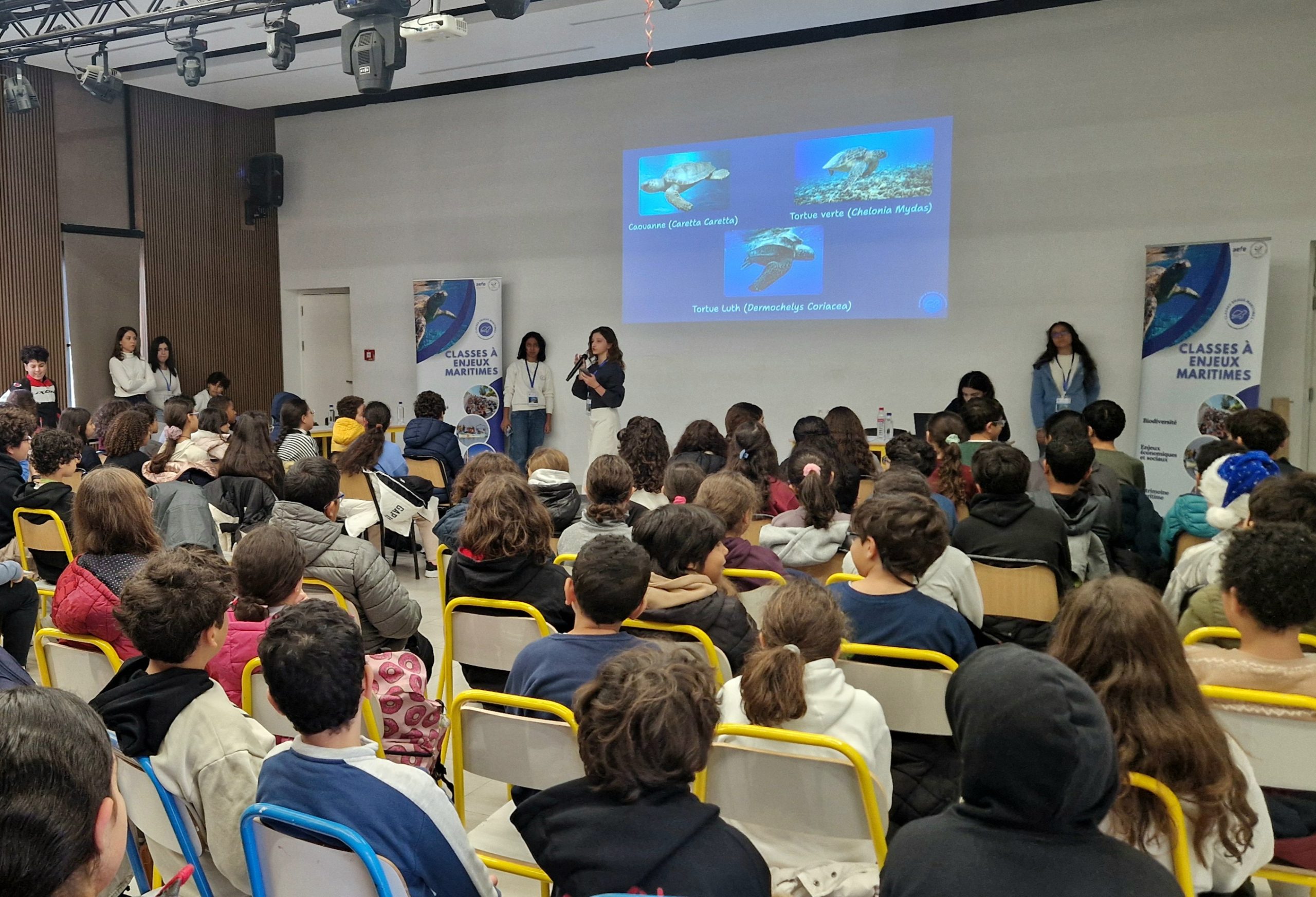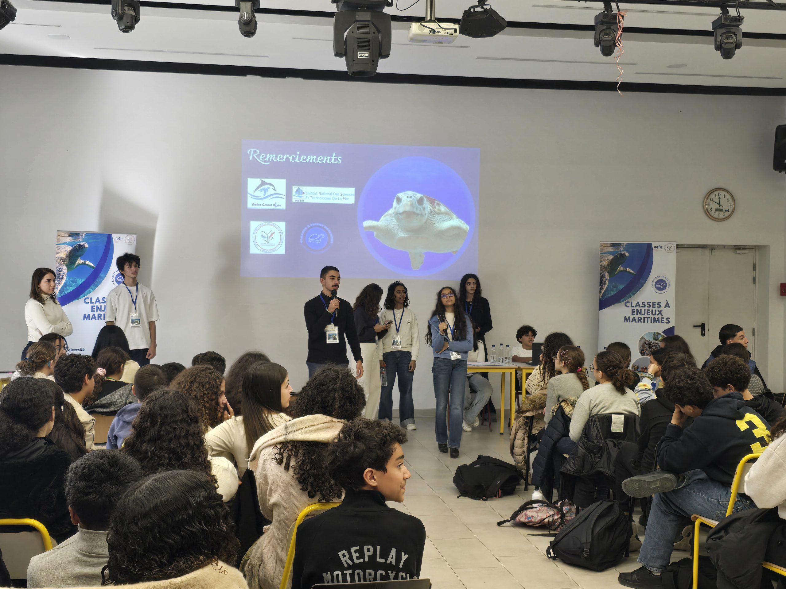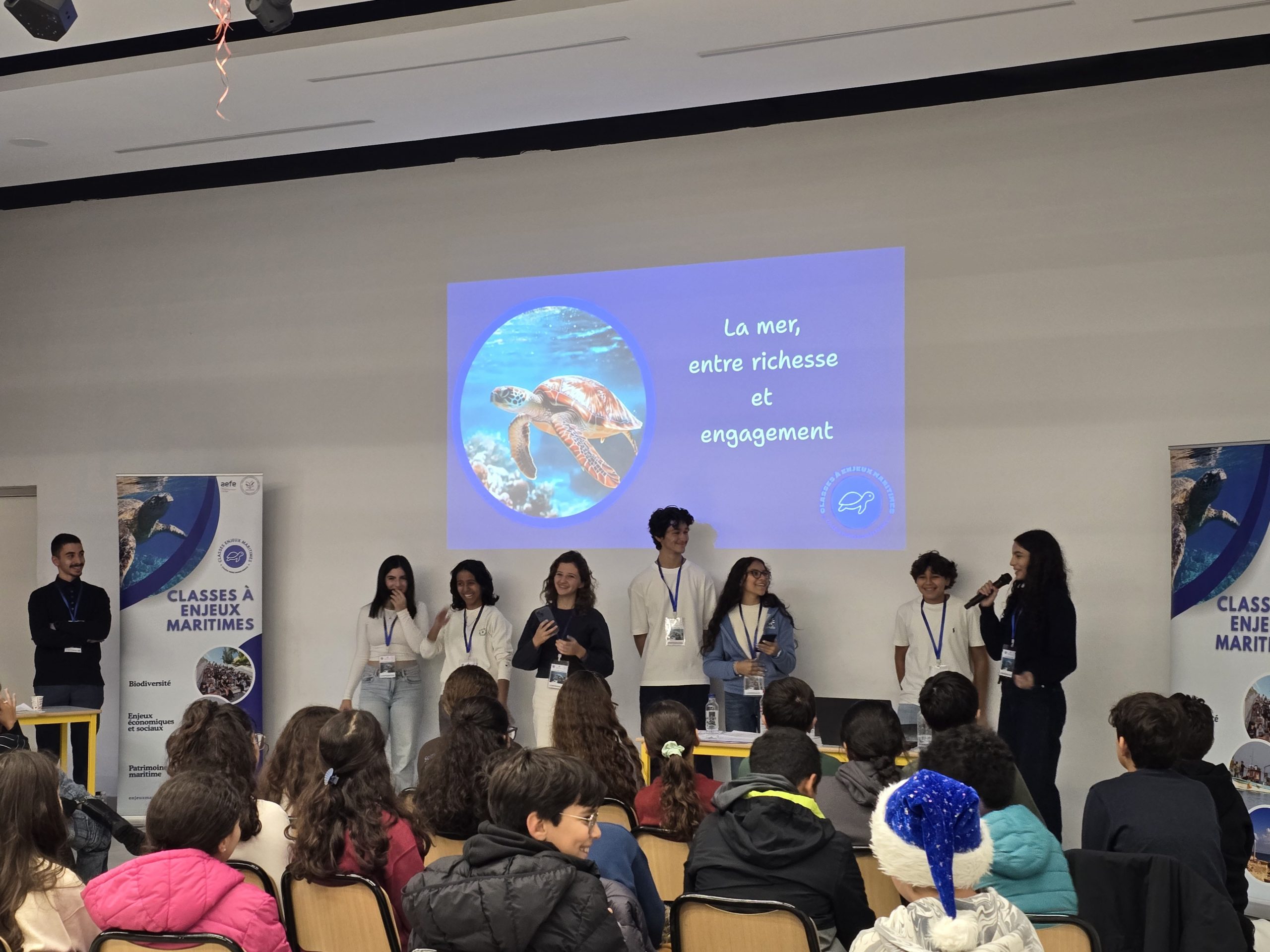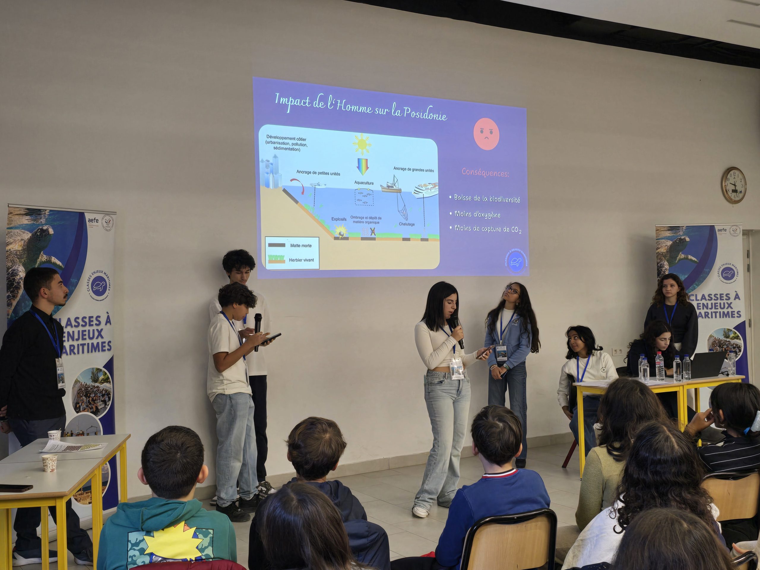 Les élèves ont présenté leur expérience à Monastir aux autres élèves de l’établissement, du CM2 jusqu’à la Terminale, contribuant ainsi à sensibiliser un large public scolaire à la richesse et à la fragilité de notre environnement marin.