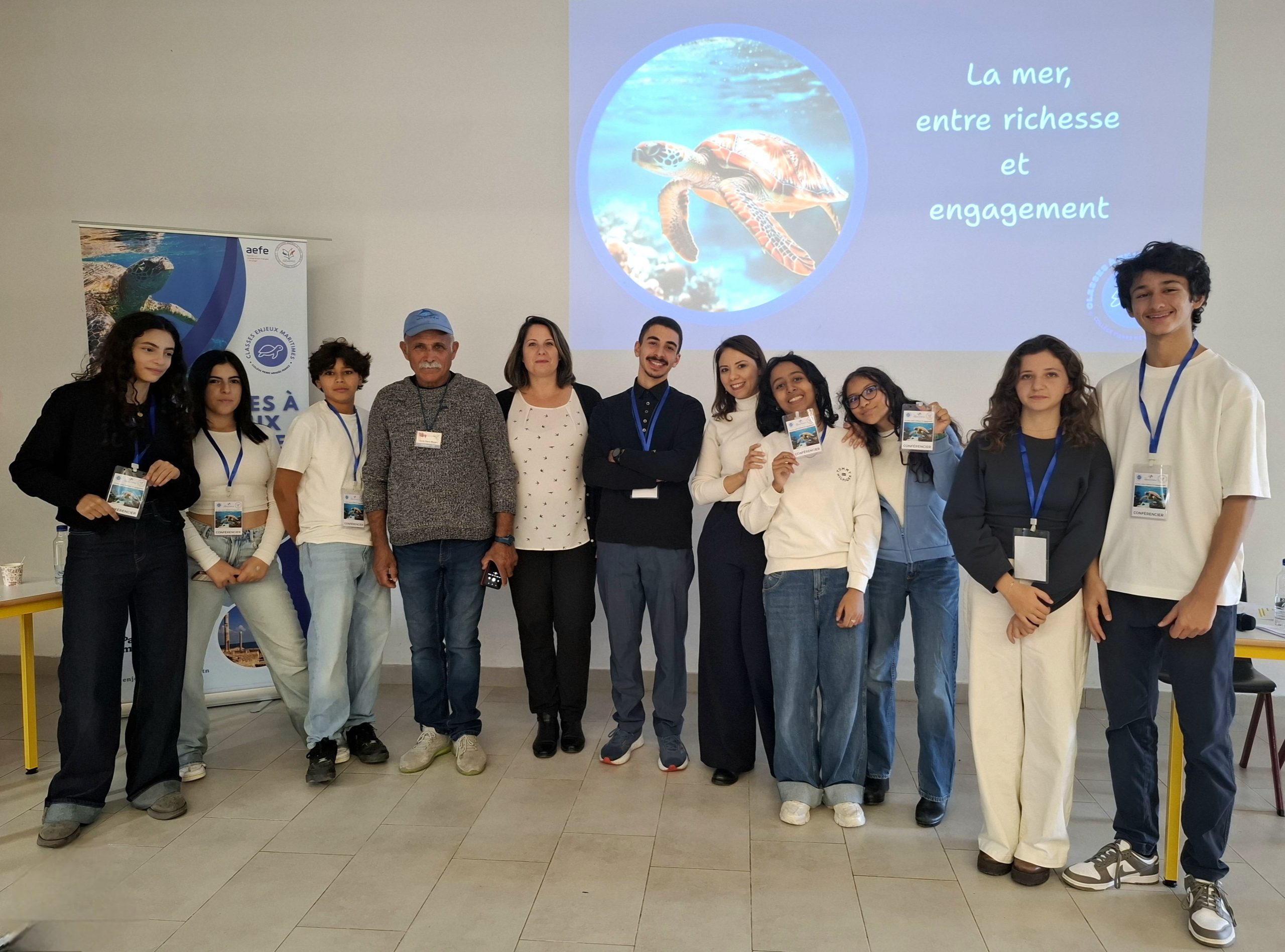 Dans le cadre des classes à enjeux maritimes, une conférence intitulée « La mer, entre richesse et engagement » a été organisée sous l’encadrement de Mme Oueslati et Mme Belkacem.