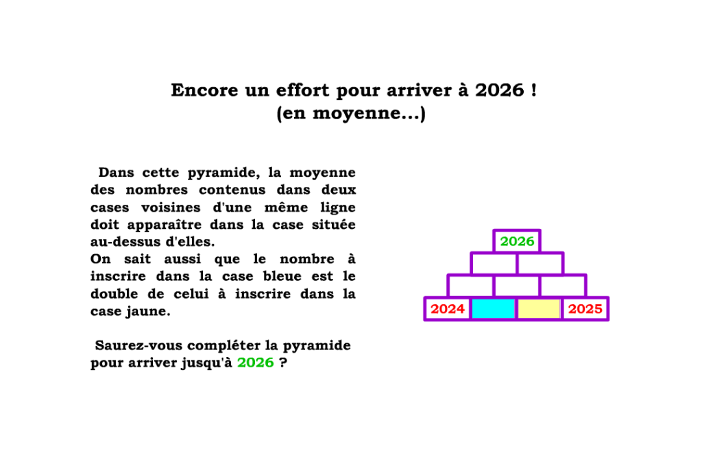 5; 4; 3; 2; 1 … Le laboratoire de mathématiques vous souhaite une très belle année 2026 ! Pour fêter cette transition chiffrée, nous vous proposons une énigme un peu plus « numérique » que les précédentes ! À vos crayons !
